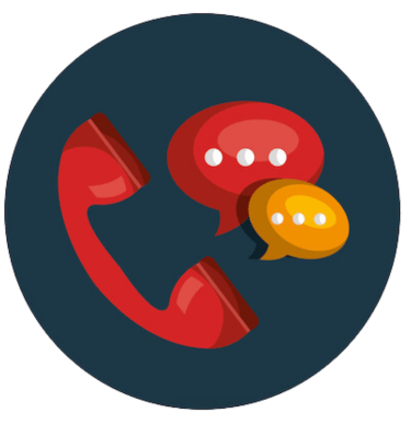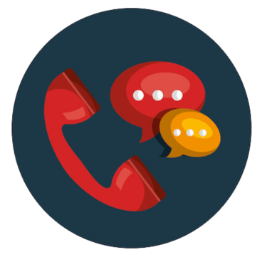 Chat bubble, call, text, and email support.